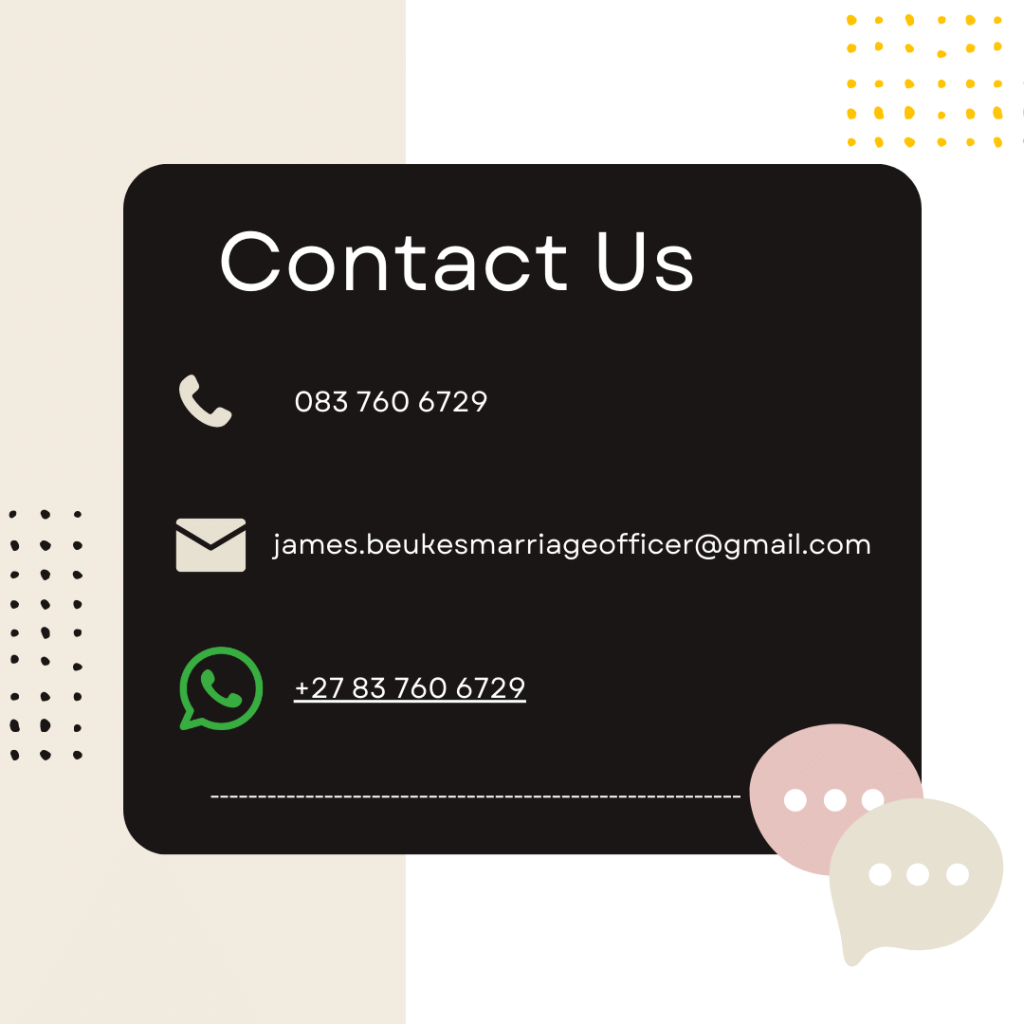 Inquiry FormThe below information will better help us to deliver exactly what you need : Please enable JavaScript in your browser to complete this form.Please enable JavaScript in your browser to complete this form.Name *FirstLastContact Number *Email Address *Nationality of Couple *Both South AfricanBoth Non- South AfricanOne Non- South AfricanWhich province are you planning to get married in ? *GautengWestern CapeEastern CapeOthComment or MessageSubmit
